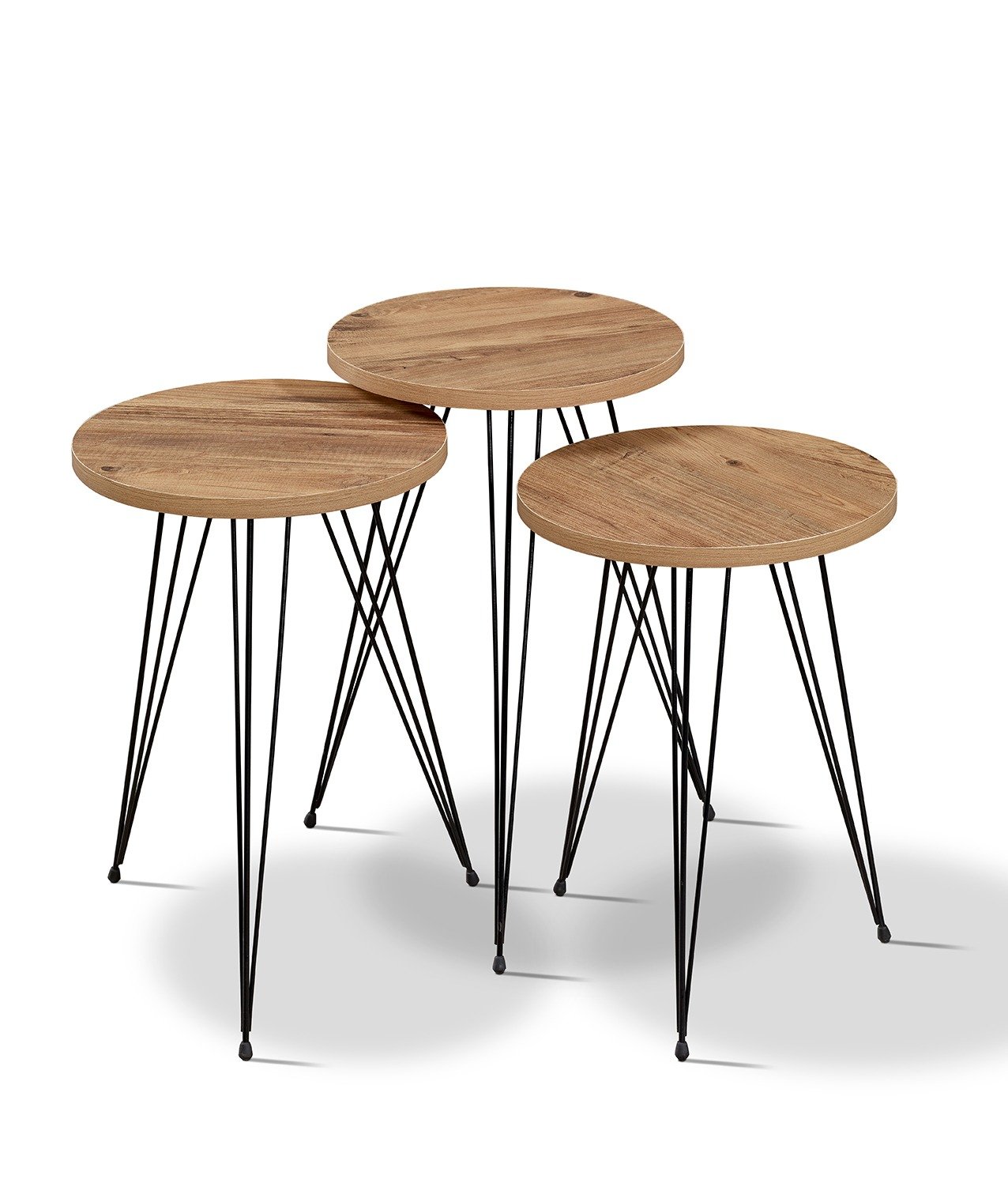 Add a touch of elegance to your living space with the Round Set of 3 Walnut nesting table. Featuring HDF in lamaica finishing paired with a sturdy metal legs, this coffee table blends natural warmth, making it a standout piece in any home.